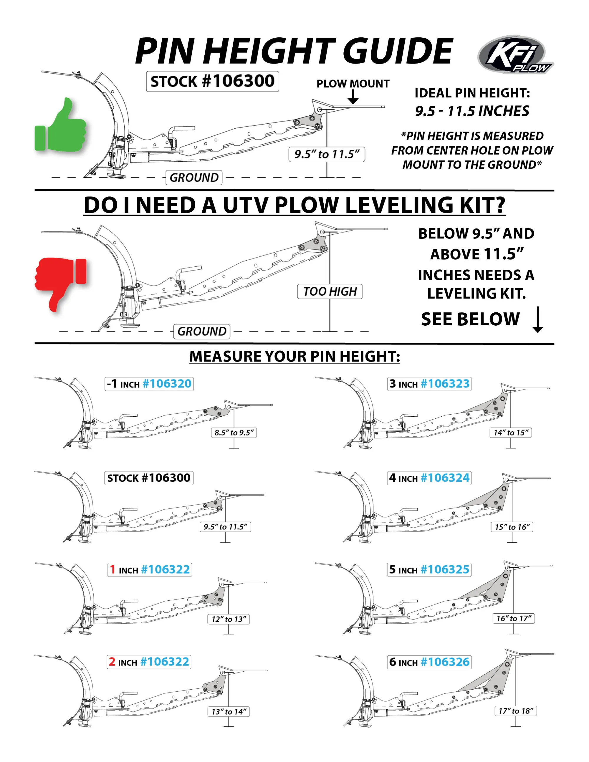 The KFI 1"- 2" UTV SQ push tube leveling kit is made for machine that have small lifts, oversize tires, or Highlifter editions. This allows you to mount your push tube at the correct height so the blade is level.